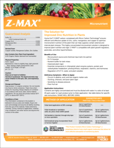 Z-MAX® carbon-complexed with MCT ensures efficient and effective uptake of zinc, sulfur, manganese, and copper to optimize micronutrient nutrition of the plant that can help suppress certain external and internal plant stresses. This highly concentrated micronutrient solution is designed to improve plant nutrition and vigor. Z-MAX® is a great additive and tank-mix companion to pest management programs.
